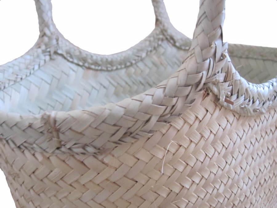 We are pleased to be able to offer a limited number of tote bags for sale. They are individually crafted in the Masasi area using traditional techniques. They are made from dried branches of the dwarf palm Hyphaena Coriacia, (as used to make the palm crosses). These grow wild and so are not cultivated or chemically treated, this has no impact on the environment and is sustainable.